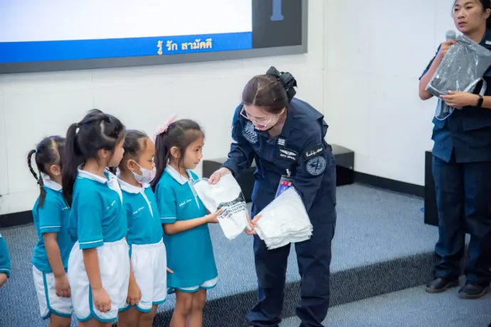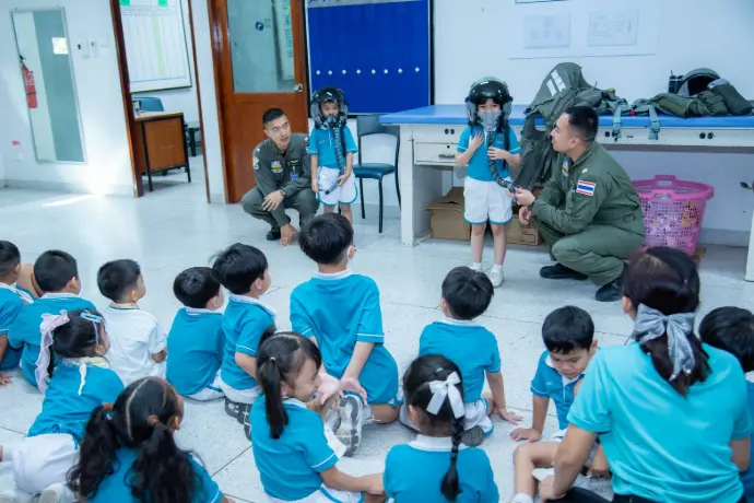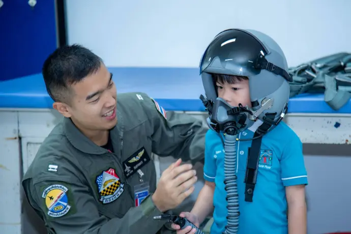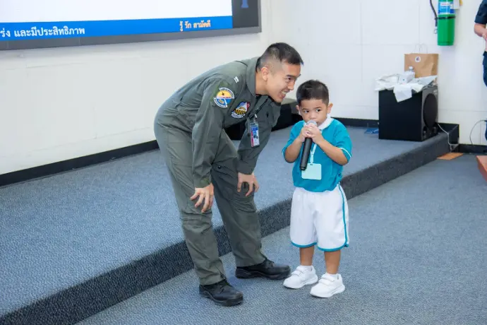 • 👨✈️ เจาะลึกชุดนักบิน: สาธิตอุปกรณ์การบินและชุดช่วยชีวิตแบบใกล้ชิด (น้องๆ ตื่นเต้นกันสุดๆ!)