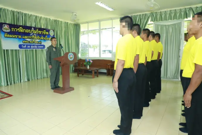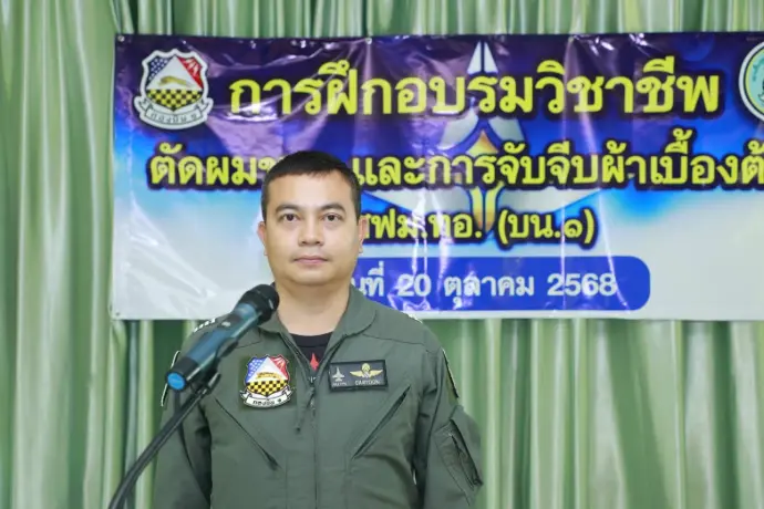 นาวาอากาศเอก เทวินทร์ มานะยิ่ง รองผู้บังคับการกองบิน ๑ เป็นประธานในพิธีเปิดอบรมวิชาชีพตัดผมชาย และการจับจีบผ้าเบื้องต้น ให้แก่ผู้เข้ารับการฟื้นฟูสมรรถภาพผู้ติดยาเสพติด พร้อมทั้งกล่าวให้โอวาทแก่ผู้เข้าอบรมฯ เพื่อให้ผู้เข้ารับการฝึกอบรม สามารถนำความรู้ที่ได้ไปประกอบอาชีพ และสร้างรายได้ให้กับครอบครัวต่อไป