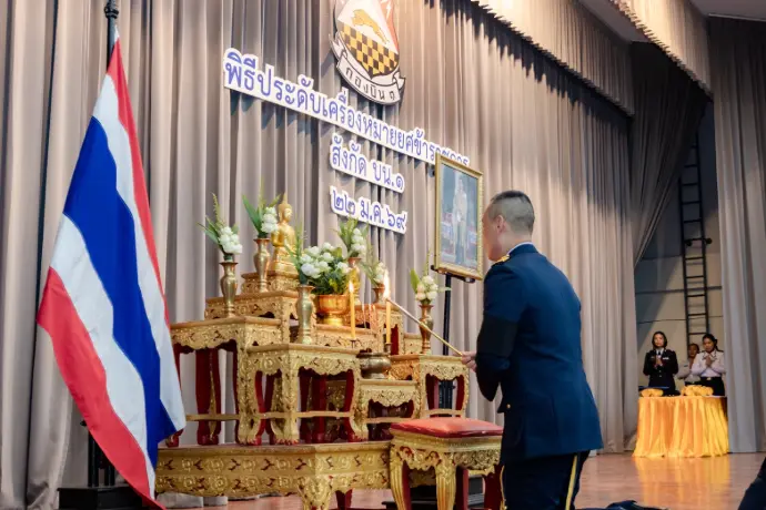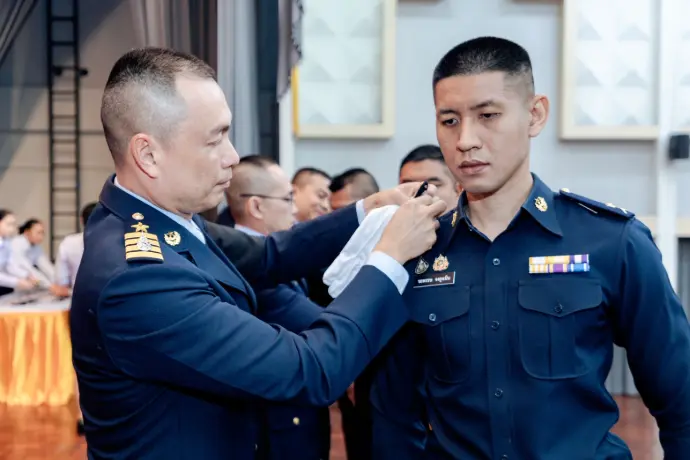 เมื่อวันที่ ๒๒ มกราคม ๒๕๖๙ นาวาอากาศเอก พิชญาณ อะสีติรัตน์ ผู้บังคับการกองบิน ๑ เป็นประธานในพิธี พร้อมด้วยคณะผู้บังคับบัญชาร่วมเป็นเกียรติในพิธี ประดับเครื่องหมายยศให้แก่ข้าราชการสังกัดกองบิน ๑ ที่ได้รับการเลื่อนยศสูงขึ้น ณ ห้อง Blue sky อาคารธูปะเตมีย์ กองบิน ๑ บรรยากาศภายในพิธีเต็มไปด้วยความสง่างามและความภาคภูมิใจ ในการนี้ ผู้บังคับการกองบิน ๑ ได้กล่าวแสดงความยินดีพร้อมทั้งมอบโอวาทแก่กำลังพล โดยเน้นย้ำให้ตั้งใจปฏิบัติหน้าที่ด้วยความวิริยะอุตสาหะ หมั่นพัฒนาทักษะและความสามารถของตนเองอย่างต่อเนื่อง เพื่อเป็นกำลังสำคัญในการขับเคลื่อนกองบิน ๑ และกองทัพอากาศให้เจริญก้าวหน้าสืบไป นอกจากความสำเร็จในหน้าที่การงานแล้ว บรรยากาศภายหลังเสร็จสิ้นพิธียังเต็มไปด้วยความอบอุ่นและรอยยิ้มแห่งความปลาบปลื้ม เมื่อครอบครัวและบุคคลอันเป็นที่รักมาร่วมแสดงความยินดีอย่างเป็นกันเอง มีการมอบดอกไม้และถ่ายภาพร่วมกัน เพื่อบันทึกความทรงจำอันล้ำค่า ซึ่งแสดงให้เห็นว่าเบื้องหลังความสำเร็จและกำลังใจสำคัญของทหารอากาศทุกคน