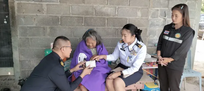 ในการนี้ศูนย์บรรเทาสาธารณภัย กองบิน ๑ ได้มอบผ้าห่มกันหนาว และยาสามัญประจำบ้านให้กับ นางเจียว ฝานสูงเนิน อายุ ๙๑ ปี และนางจำนงค์ รัตนานนท์ อายุ ๘๔ ปี ซึ่งมีโรคประจำตัว และเป็นผู้ป่วยติดเตียง เมื่อวันที่ ๒๐ พฤศจิกายน พ.ศ.๒๕๖๘ ณ ตำบลช้างทอง อำเภอเฉลิมพระเกียรติ จังหวัดนครราชสีมา