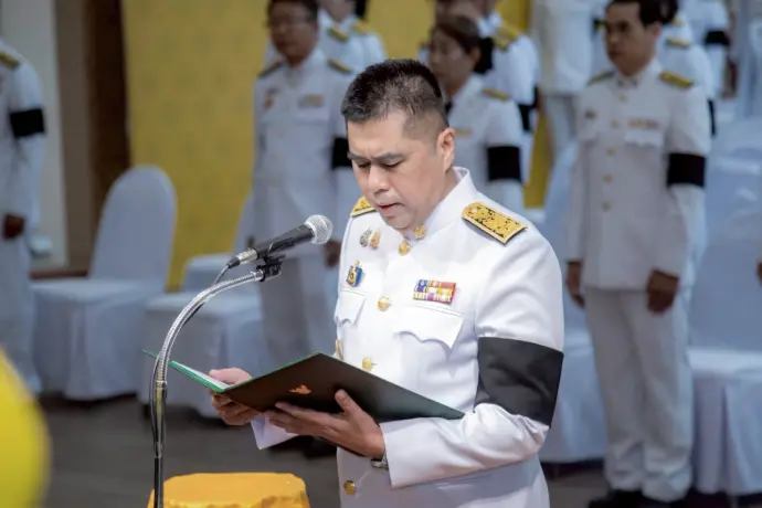 นาวาอากาศเอก พิชญาณ อะสีติรัตน์ ผู้บังคับการกองบิน ๑ มอบหมายให้ นาวาอากาศเอก สมศักดิ์ บุญดารา ร่วมพิธีวางพานพุ่มดอกไม้สด เนื่องในวันพระบิดาแห่งฝนหลวง ประจำปี ๒๕๖๘ เพื่อน้อมรำลึกในพระมหากรุณาธิคุณของ พระบาทสมเด็จพระบรมชนกาธิเบศร มหาภูมิพลอดุลยเดชมหาราช